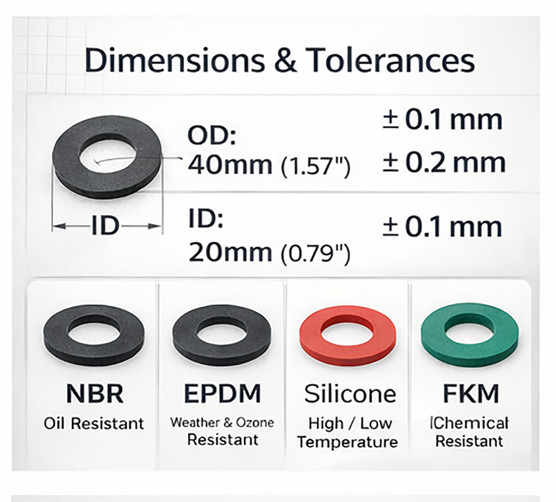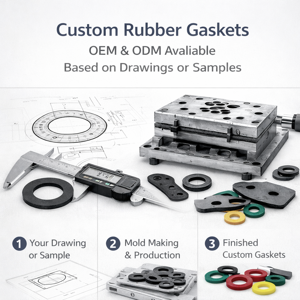As a professional rubber products manufacturer in China, we specialize in custom rubber flat gaskets produced according to customer drawings, samples, or technical specifications.