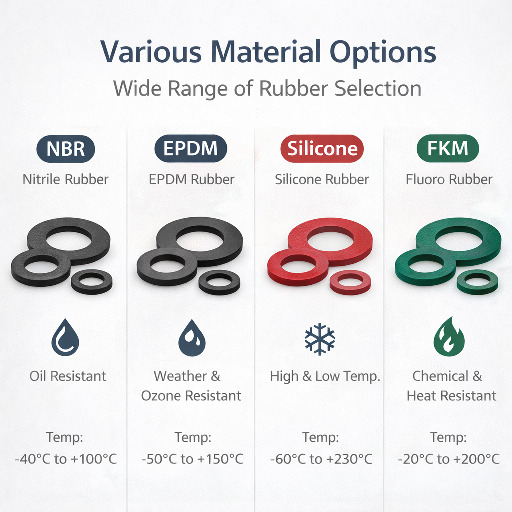 We offer a wide range of rubber materials to meet different application requirements: